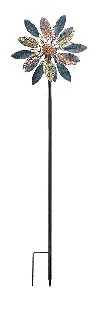 Lacey daisy windspinner - blue, bronze and gold laced leaves.